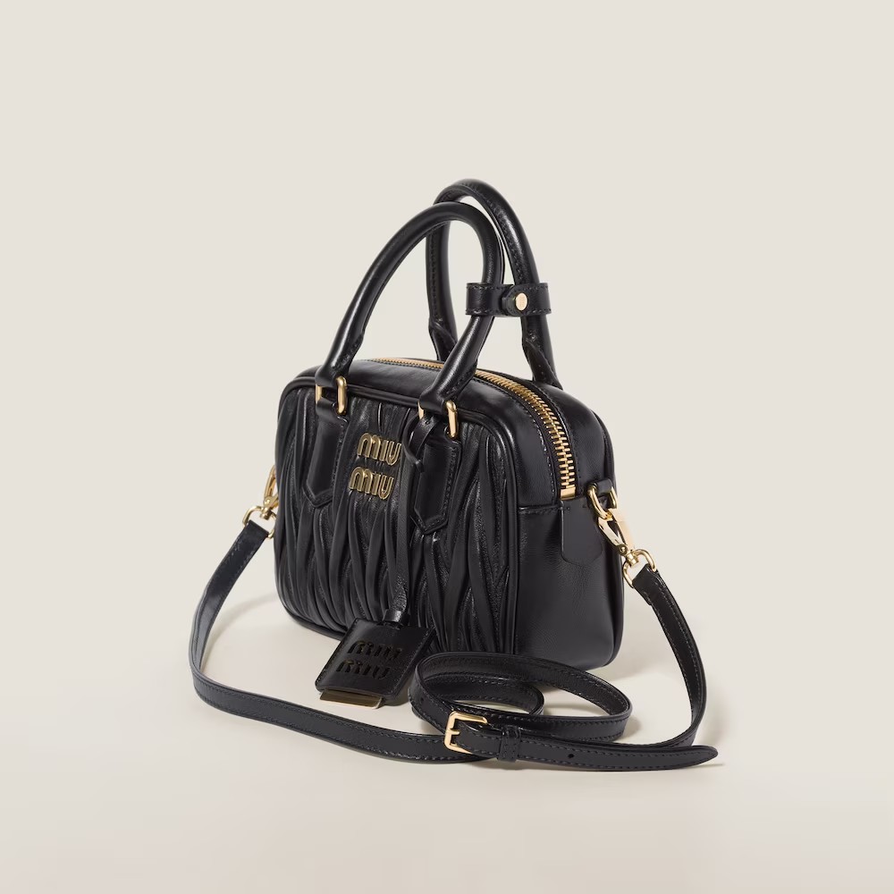 / Arcadie Matelassé Soft Lamb Leather Handbag Black