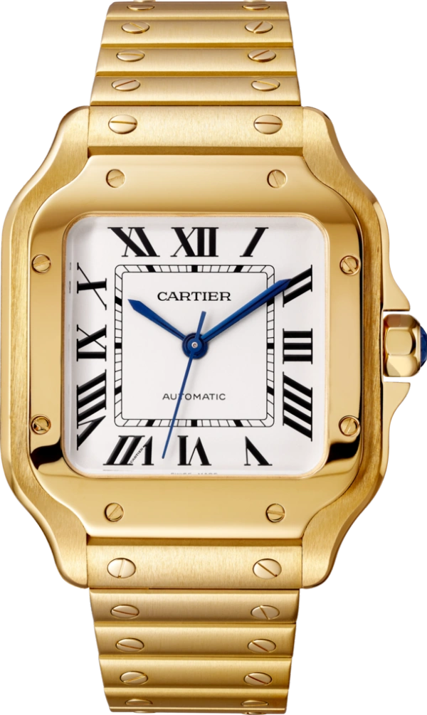 with faceted sapphire. Cartier Santos 18kt Yellow Gold Men’s Watch W20071Y1.