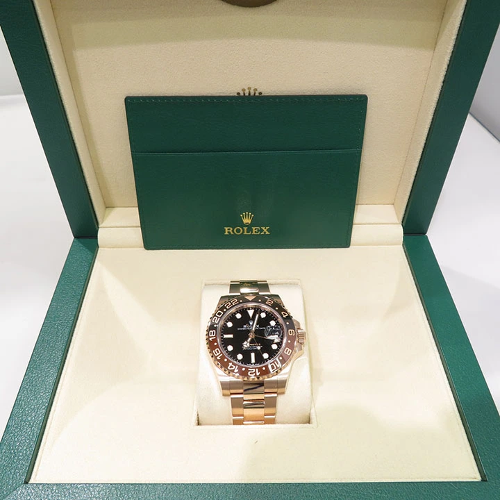 THE OYSTER PERPETUAL GMT-MASTER II IN 18 CT EVEROSE GOLD WITH AN OYSTER BRACELET.