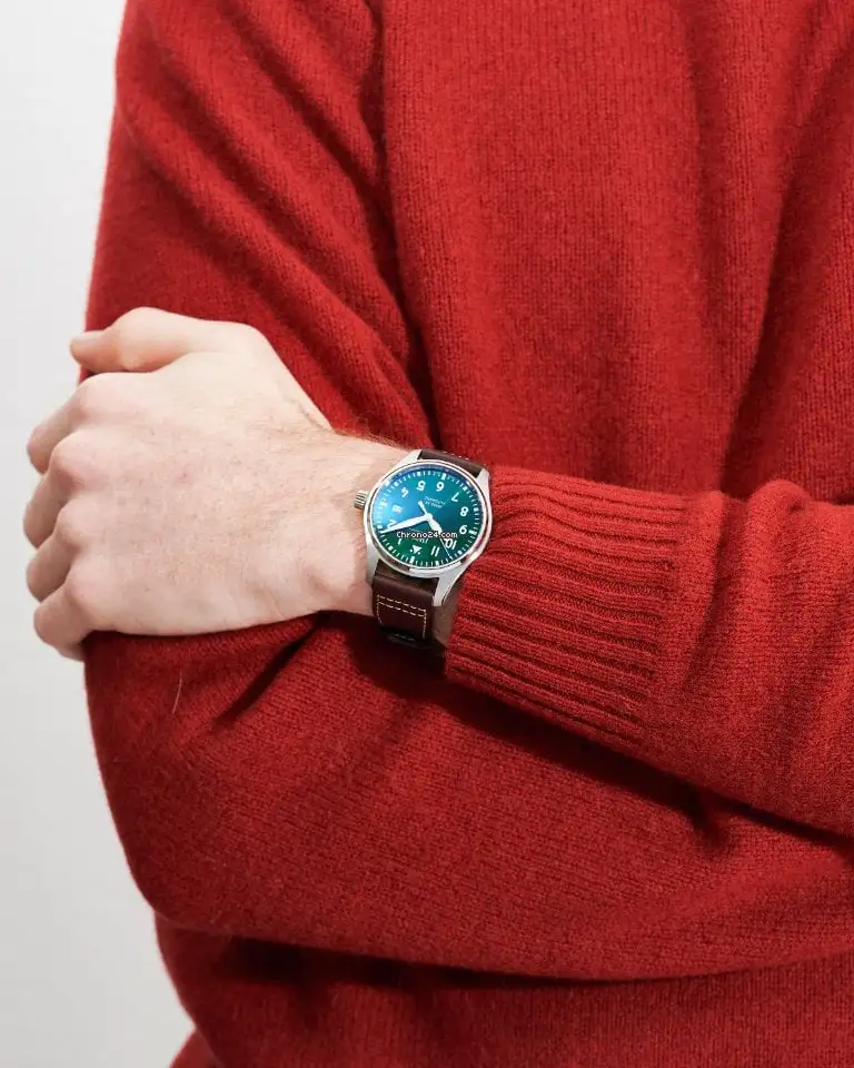 Stainless steel case, Automatic, self-winding, Diameter 40.0 mm, Green dial with luminescence, Brown calfskin strap with EasX-