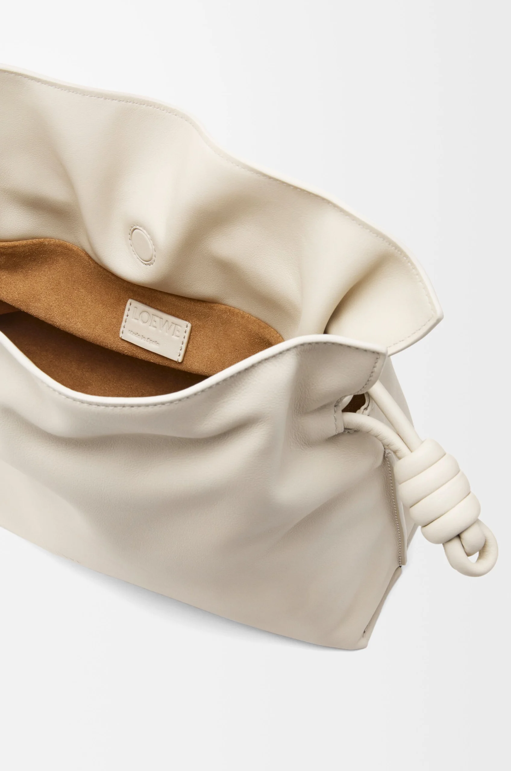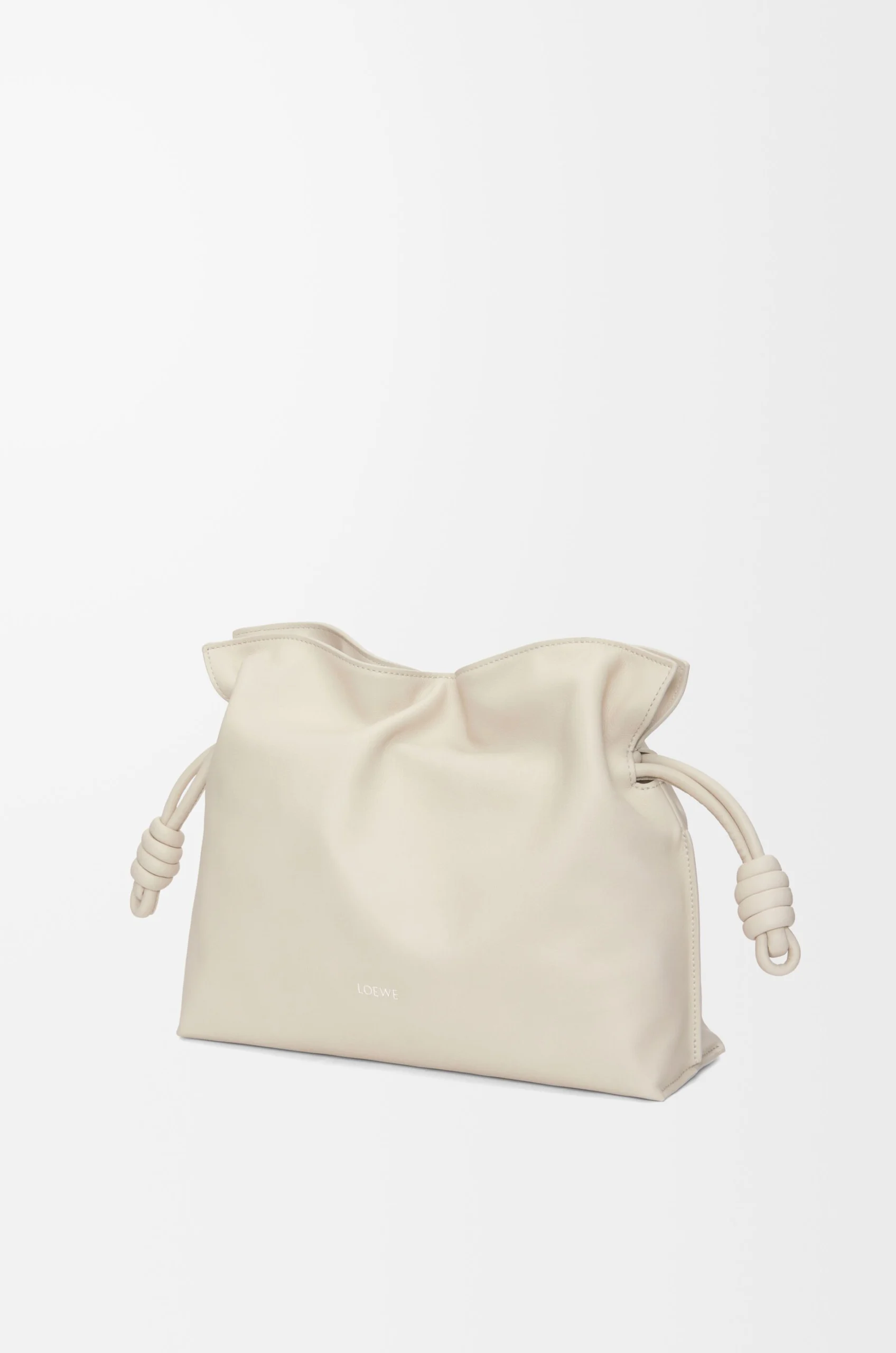 The Flamenco clutch is a soft and slouchy bag with a cinched closure and historical knot drawstrings. This medium version is