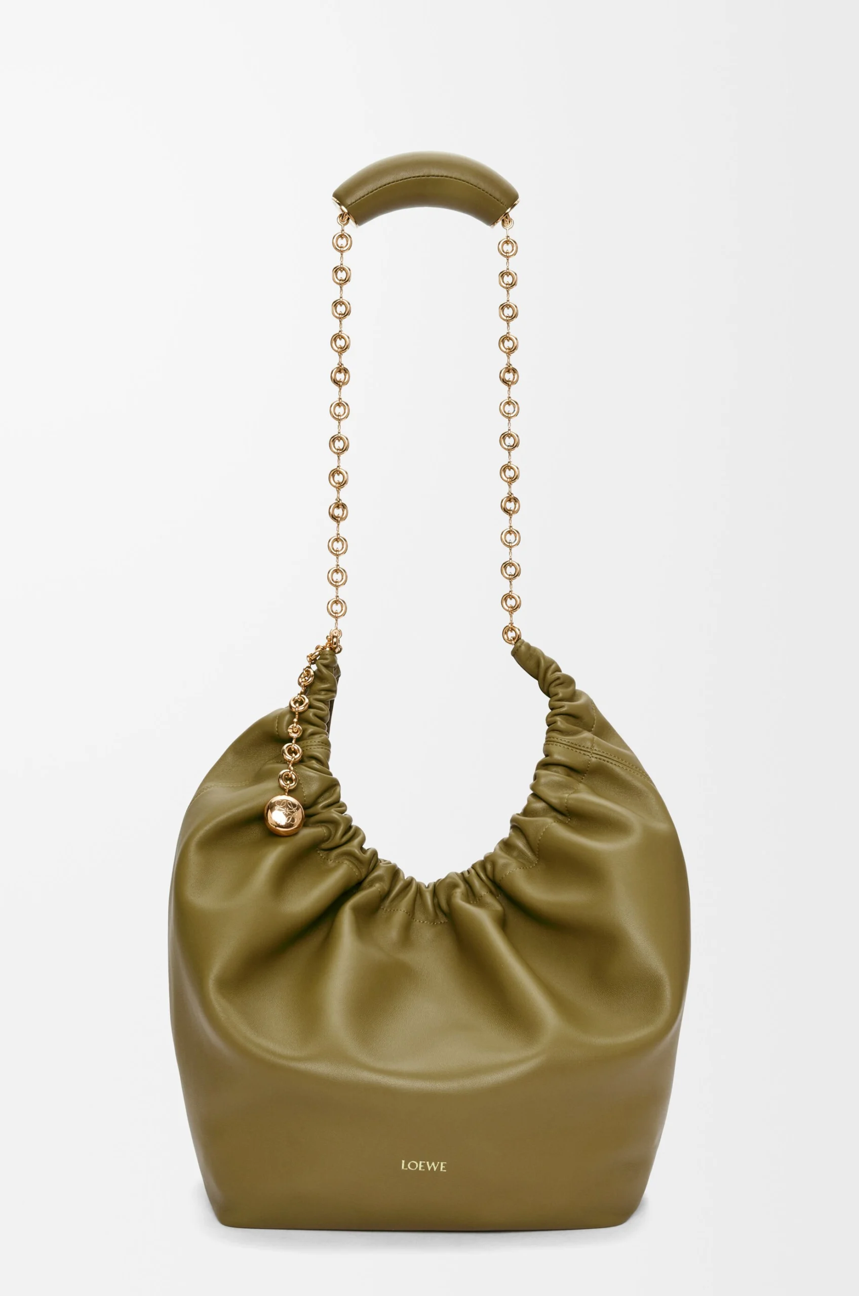 The Squeeze is a versatile design defined by a ruched body, a squeezy handle and a donut chain. This medium version is crafted in