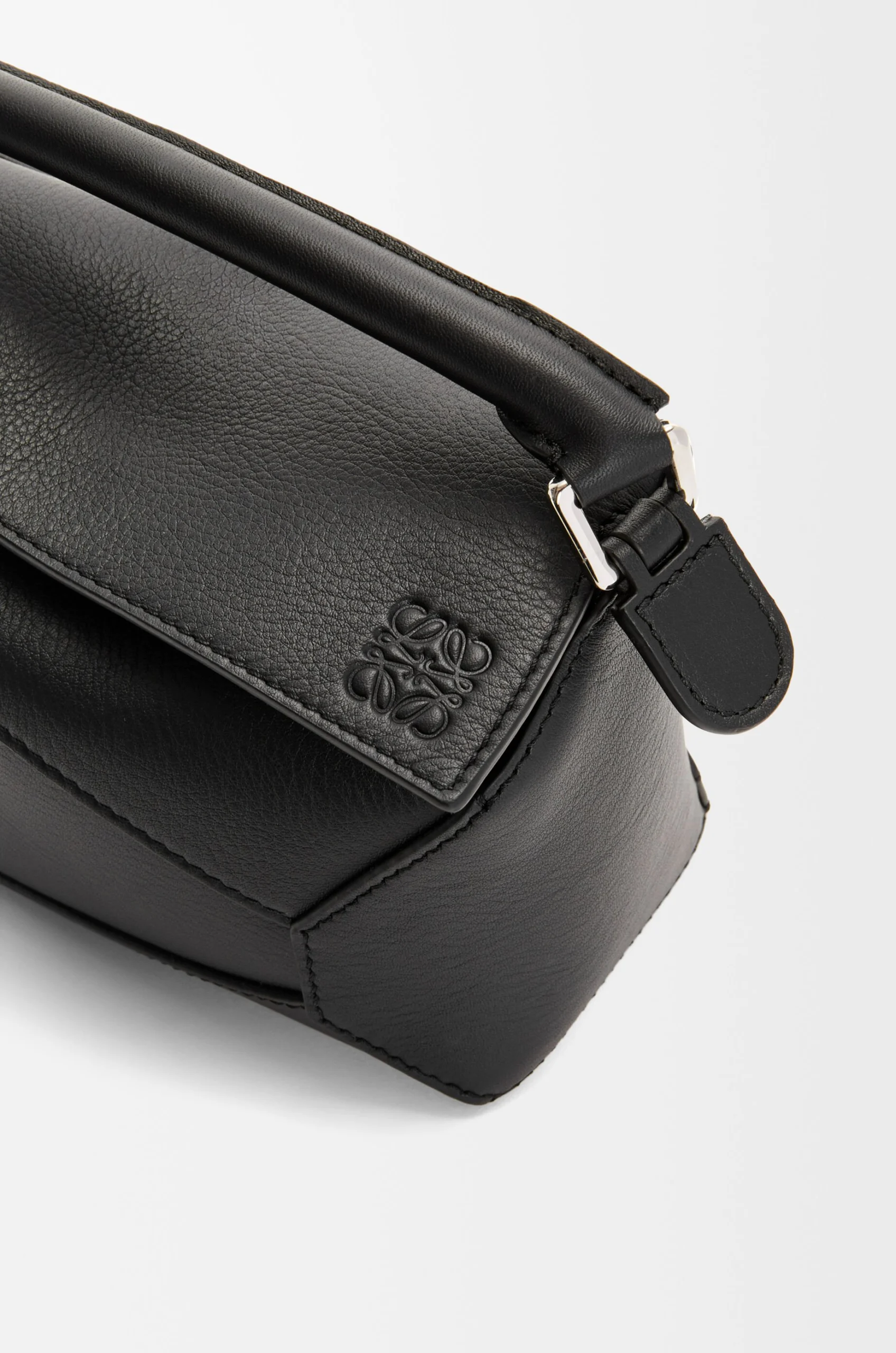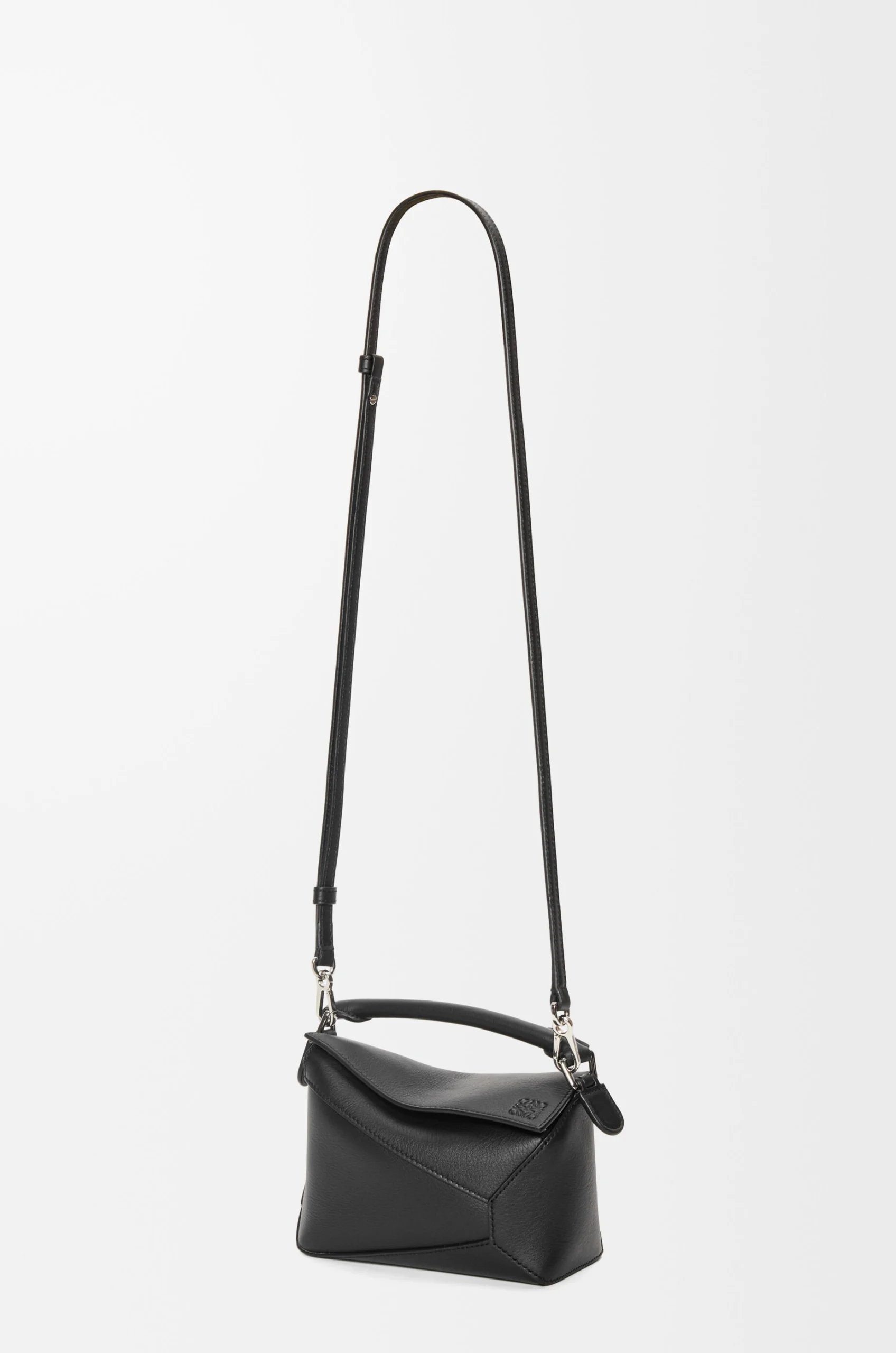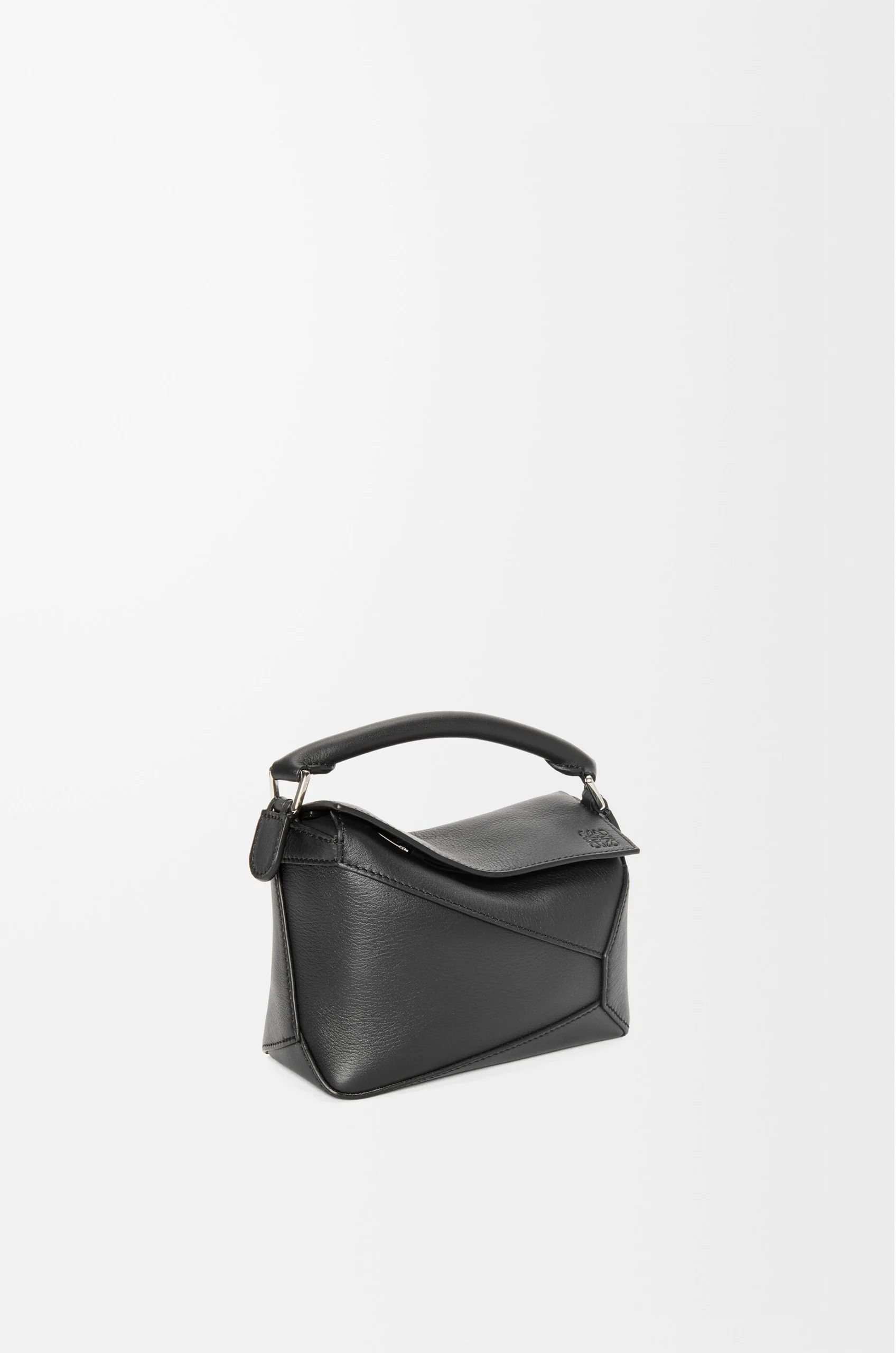 overlapped panels with single stitch lines. This mini version is crafted in classic calfskin.