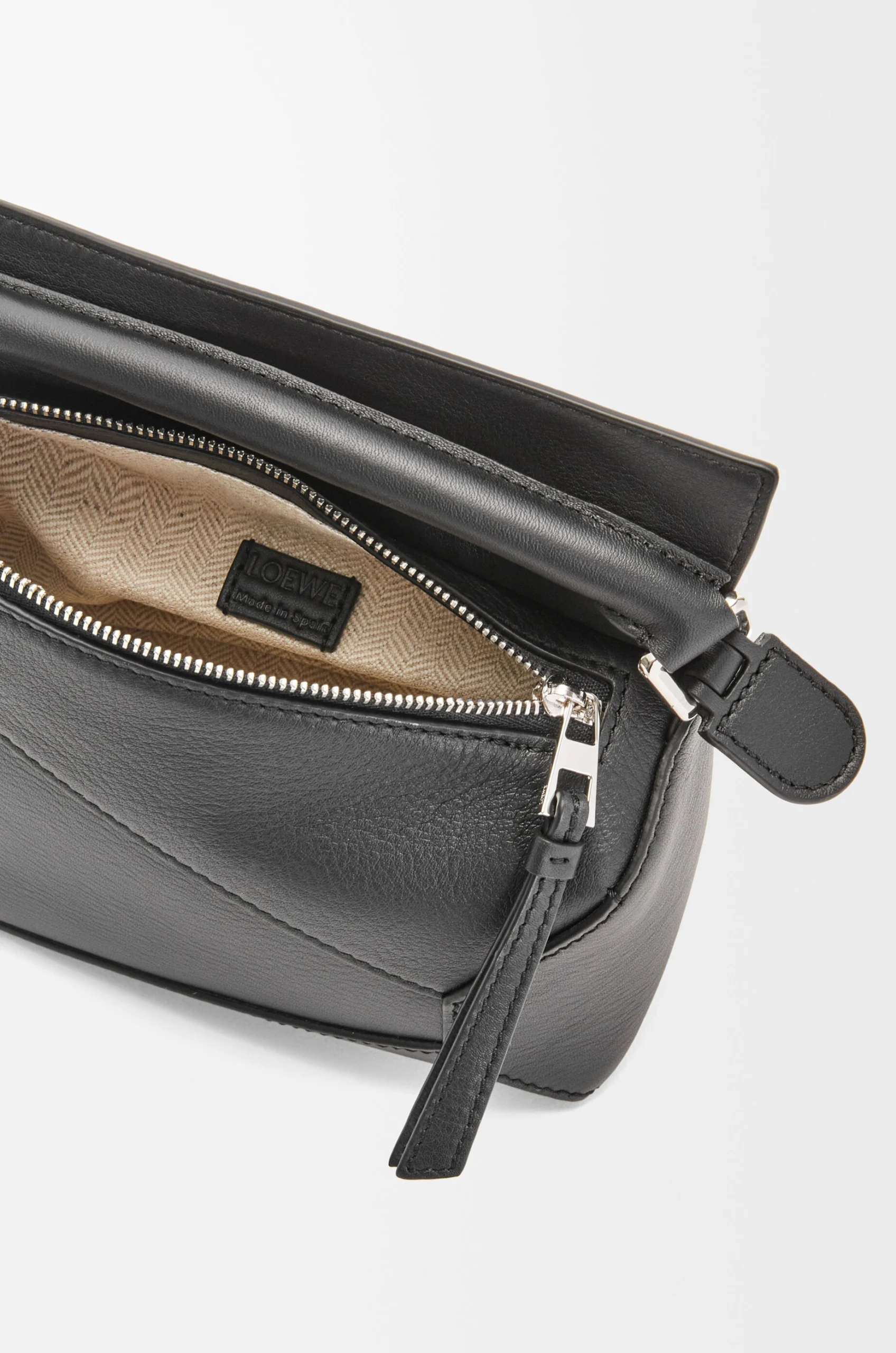 • Zip closure with calfskin pull
