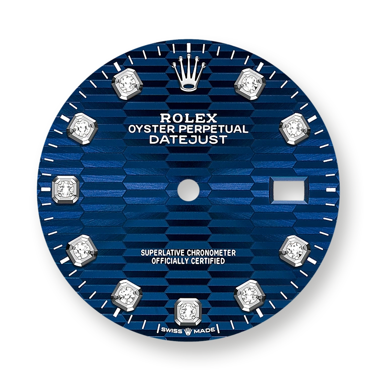 Oyster Perpetual Datejust 36 white gold and Oystersteel with diamond-set bright blue fluted dial and JUBILEE bracelet.