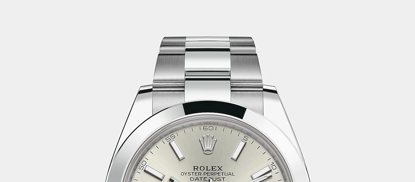 THIS OYSTER PERPETUAL DATEJUST 41 IN OYSTERSTEEL FEATURES A SILVER DIAL AND AN OYSTER BRACELET.