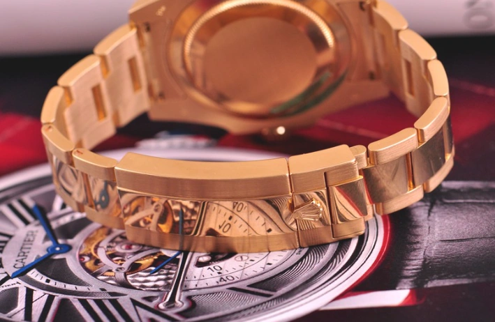 Rolex’s patented GLIDELOCK buckle is made of gold. The advantage of this buckle is that divers can easily adjust the strap without