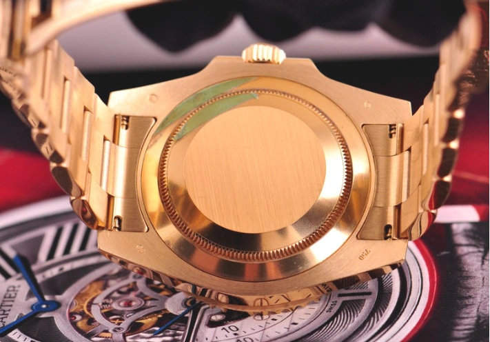 The triangular pit bottom cover is screwed on by a Rolex watchmaker with a special tool to make the case completely sealed. It is