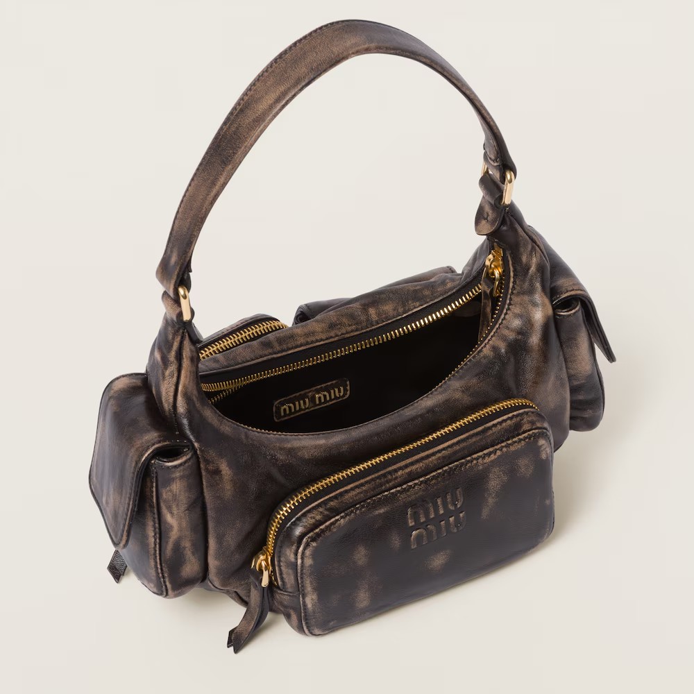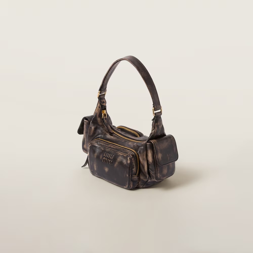 Soft Lamb Nappa Pocket Handbag Coffee Brown