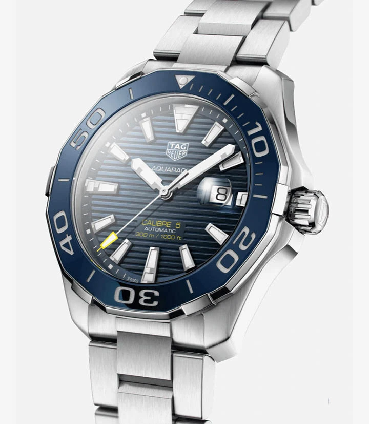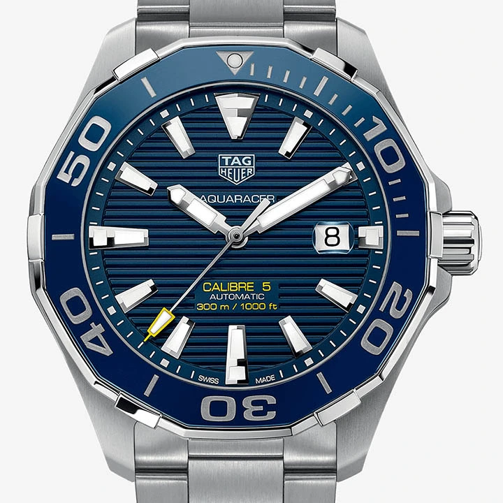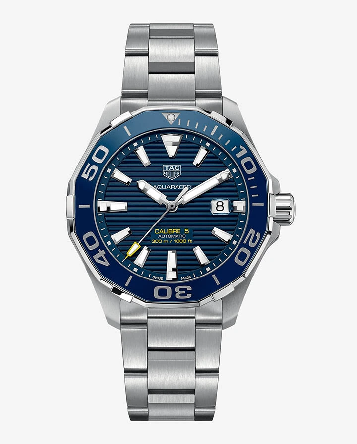 Designed in stainless steel and sculpted for a look of absolute luxury and class, the Tag Heuer Aquaracer Caliber 5 model is an