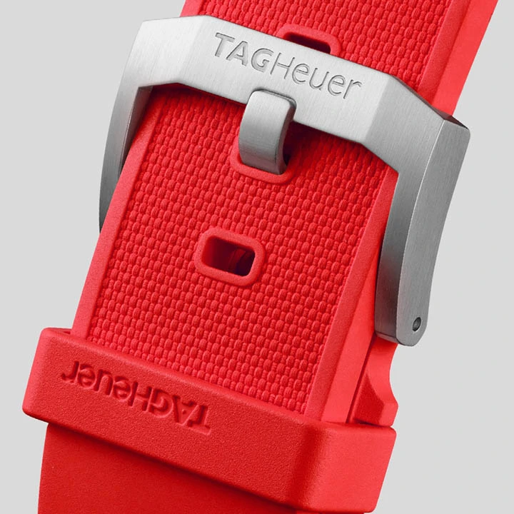 With an unmistakable vivid red sunray brushed dial and matching rubber strap, this fast-moving chronograph is ready to roar ahead
