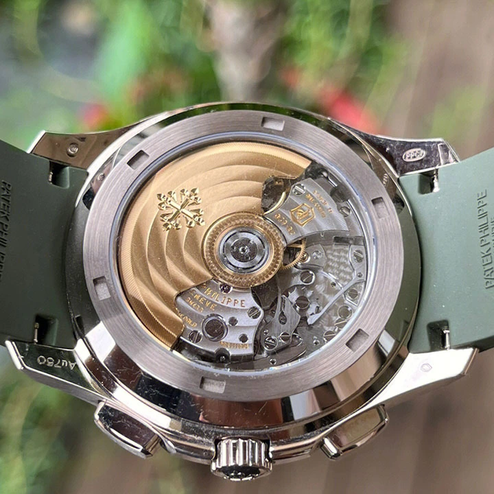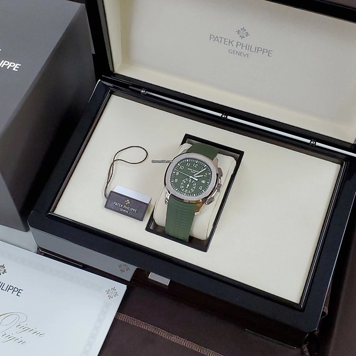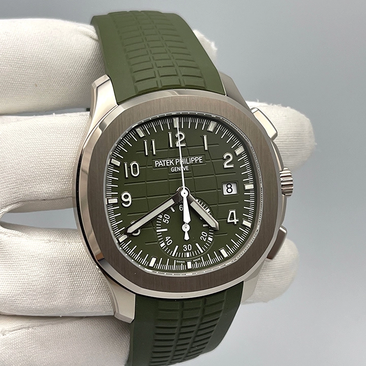 Khaki green, embossed with Aquanaut pattern, gold applied numerals with luminescent coating.