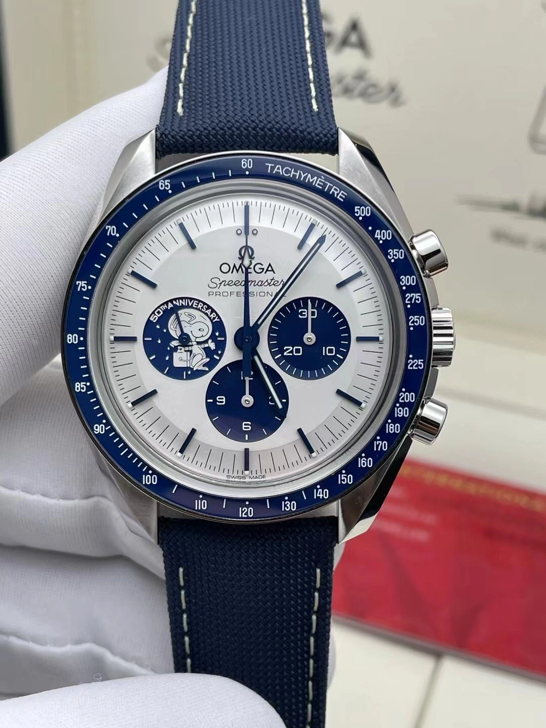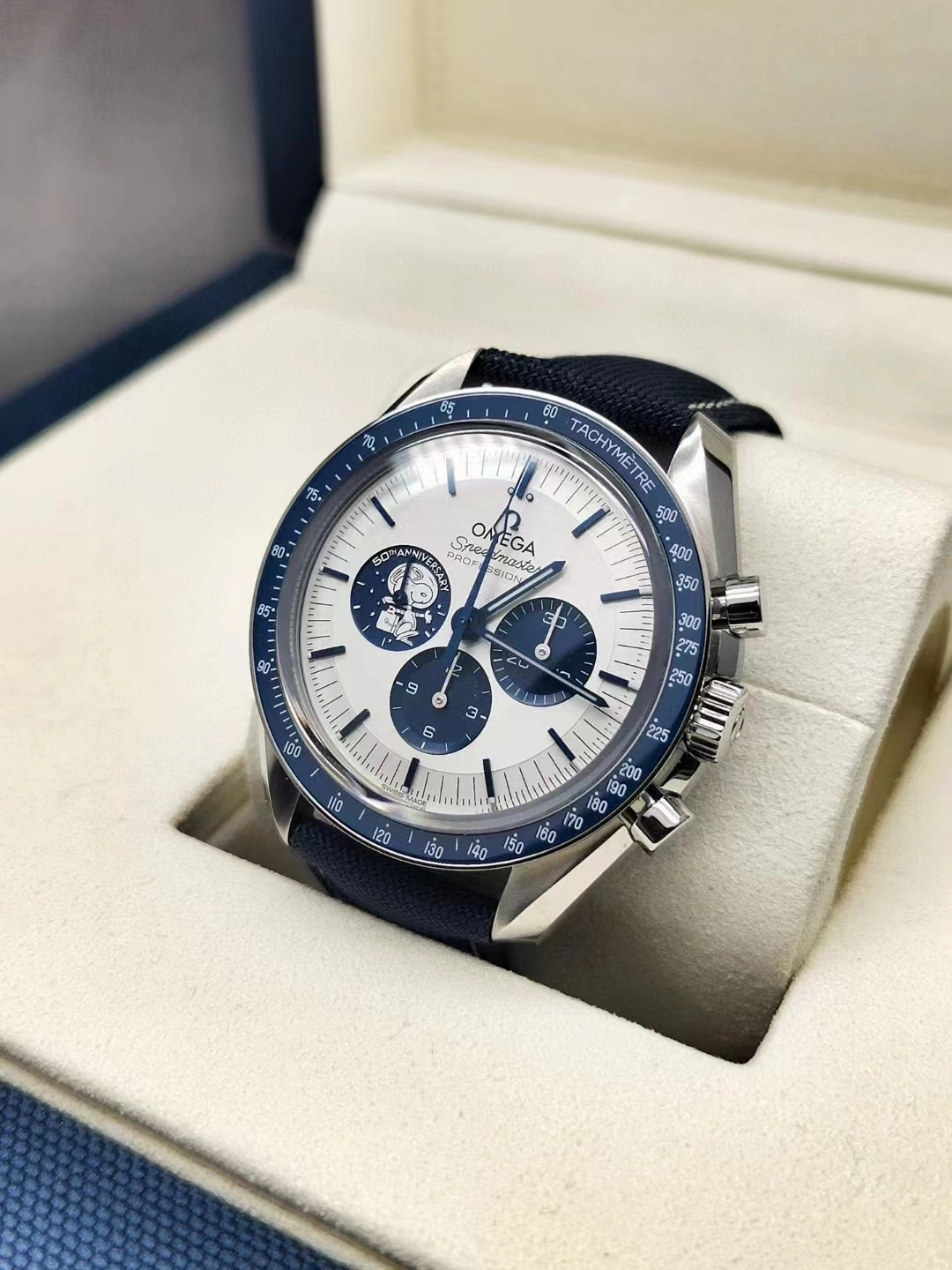 Snoopy medallion on the blue subdial at 9 o’clock.